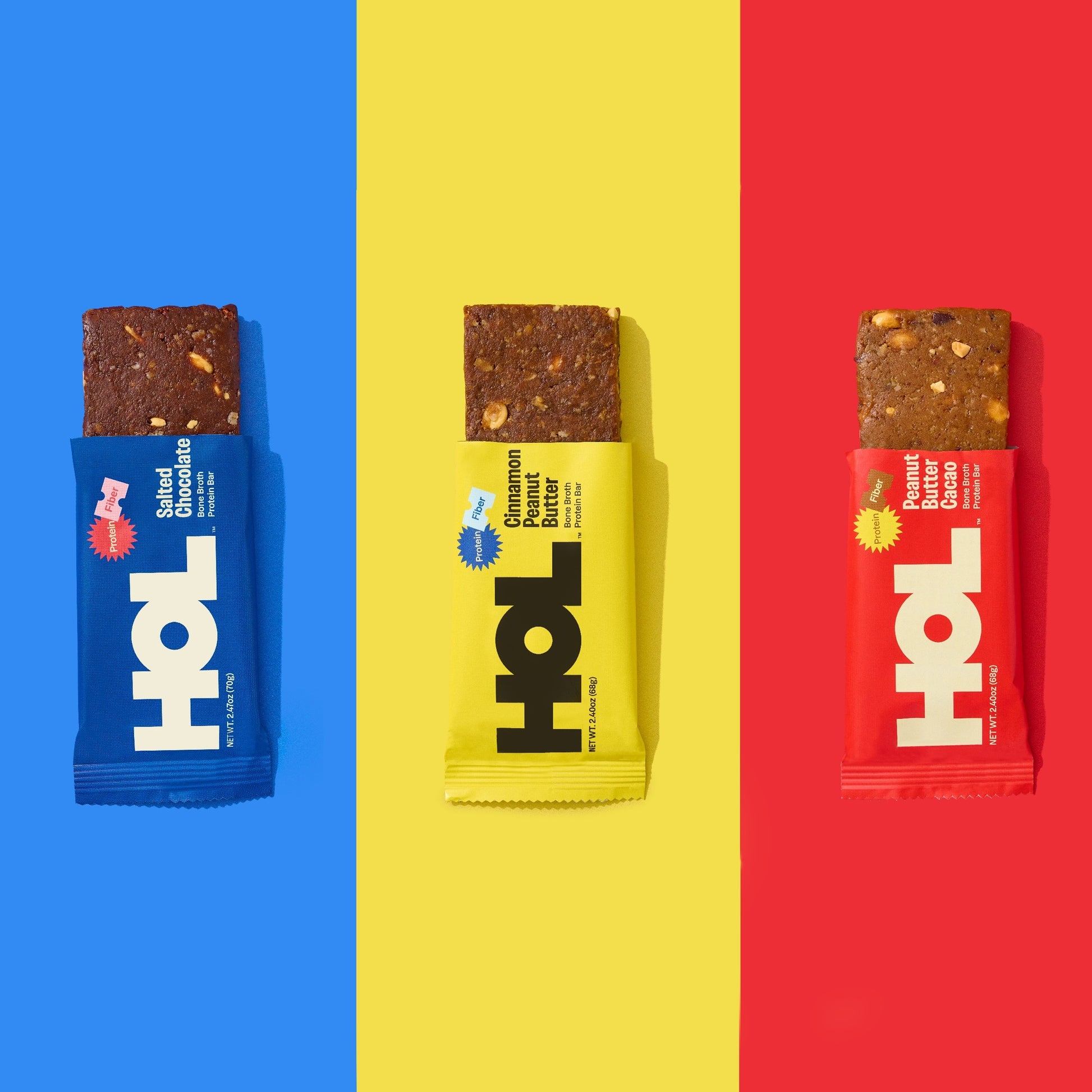 Can’t pick just one? Get the best of all worlds with our Variety Pack (aka "The Trio"), featuring Cinnamon Peanut Butter, Peanut Butter Cacao, and Salted Chocolate. Each bar delivers 20g of protein from whole-food ingredients you can actually recognize. No artificial stuff, no over processing—just real, satisfying fuel in three craveable flavors.
